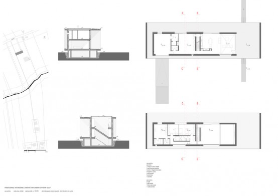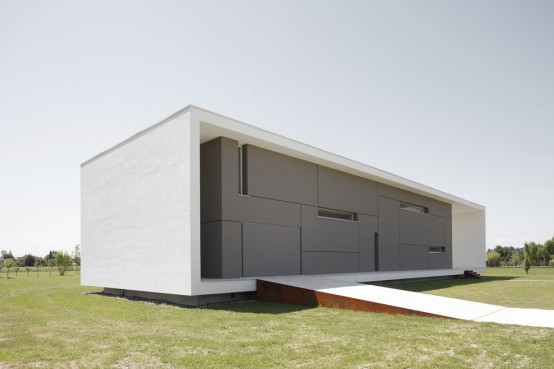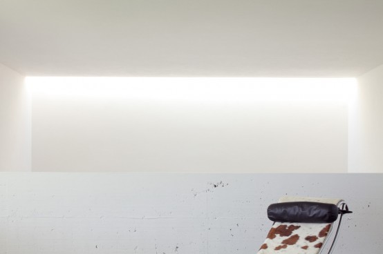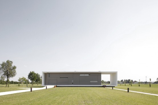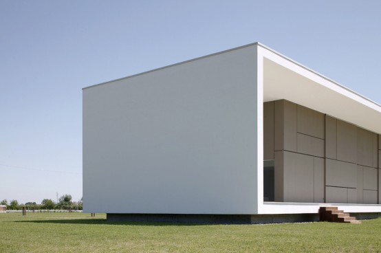 House Sulla Morella is minimalist home designed by Andrea Oliva from Cittaarchitettura. It occupies a flat area about 60m away from the street. The house has a rectangular shape of approximately 11 m wide, 34 m long and 6 m tall. It visually consists of two elements: the porch made of concrete and finished with white plaster, and the main body inside of it. Large windows that frame a beautiful landscape around it are protected by the depth of the porch during the summer. These windows have wooden frames with laminated glazing so they are also protected from cold winds during the winter. The flat roof features solar panels that provides the home with an electricity and a hot water.